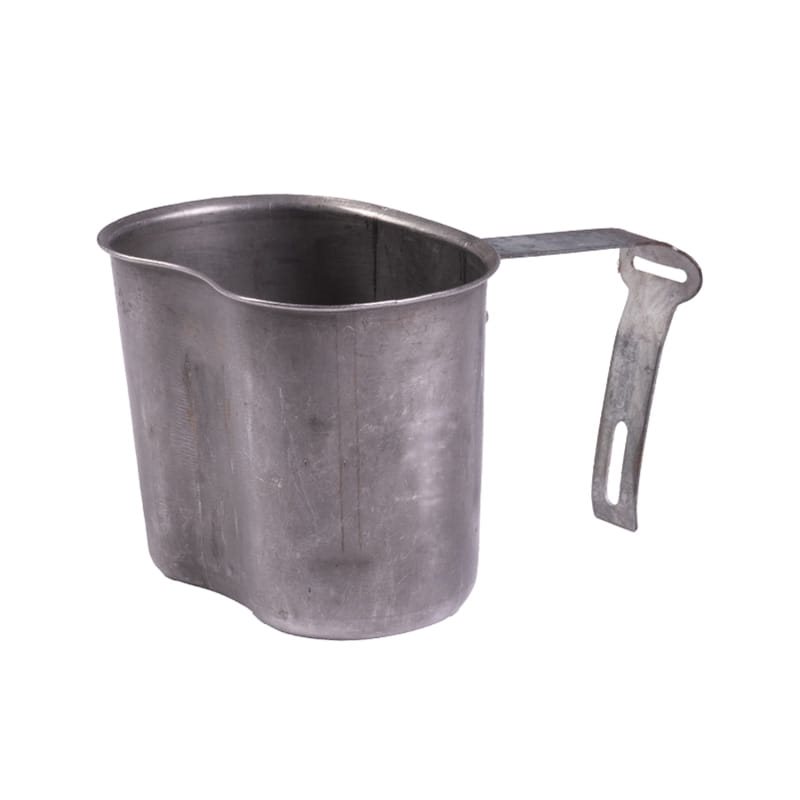 Bebedero militare statunitense per borraccia da campo da 1 litro. Modello con manico ribaltabile. Il manico può essere bloccato per impedirne il ribaltamento. Utilizzabile anche per cucinare.