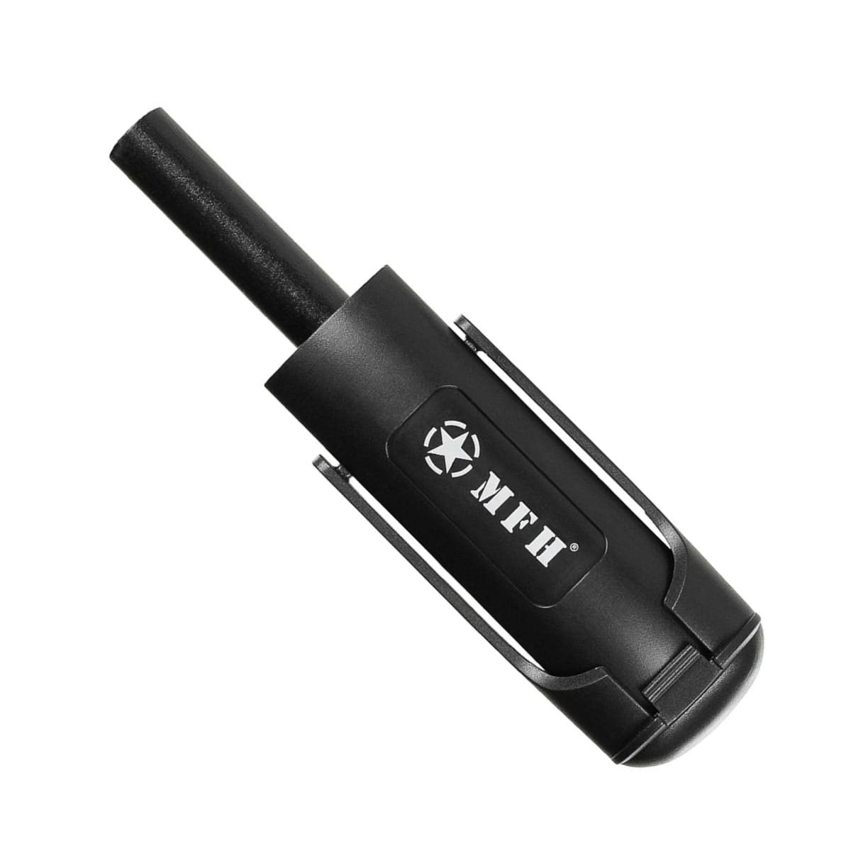 Accendino progettato in modo intelligente per essere utilizzato con una sola mano. Posizionare l'estremità dell'asta di accensione sul materiale da accendere (preferibilmente su una superficie solida), premere con il pollice il pulsante sull'accendino e spingere contro la superficie: l'accendino inizierà a emettere scintille. Semplice ed elegante.