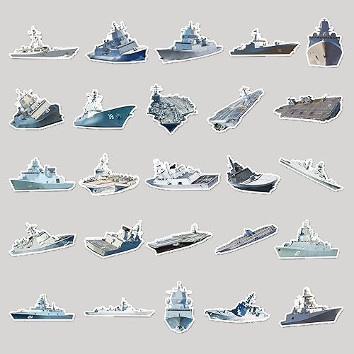 Set di 50 adesivi colorati raffiguranti navi militari: corazzate, incrociatori, portaerei.