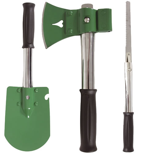 Piccolo attrezzo combinato. Utilizzabile come sega, ascia e piccolo badile. Lunghezza totale 38 cm. Ulteriori informazioni