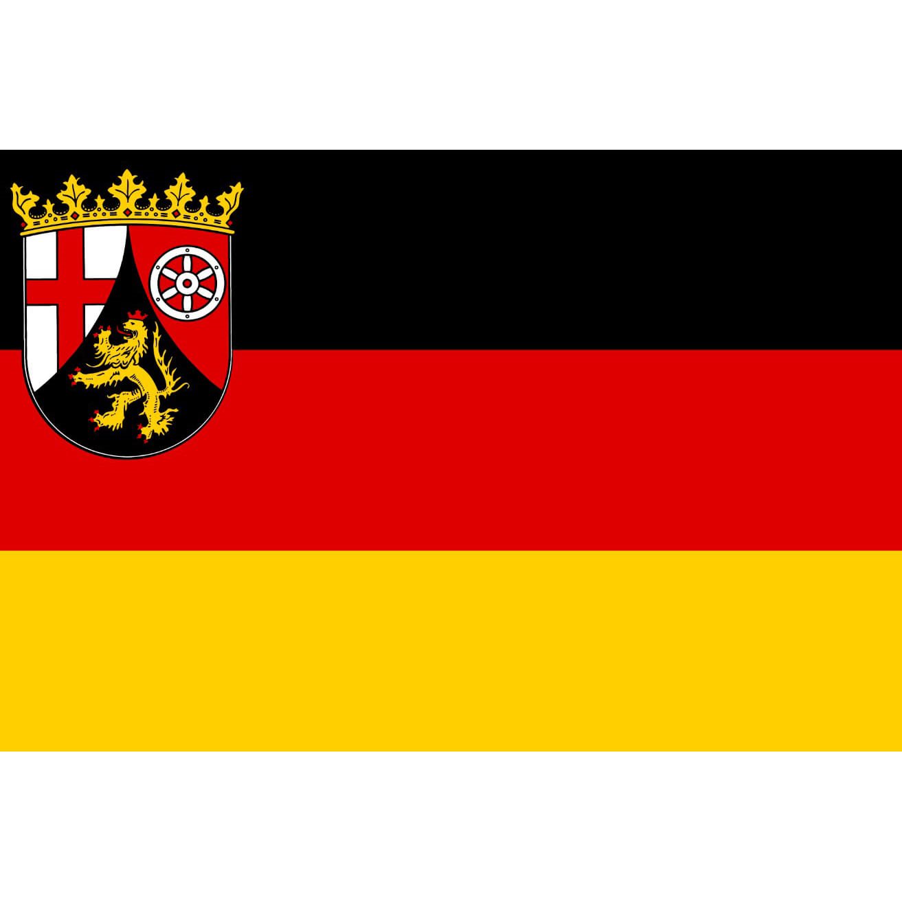 Bandiera dello Stato federale tedesco Renania-Palatinato (Rheinland-Pfalz) con stemma. Ulteriori informazioni