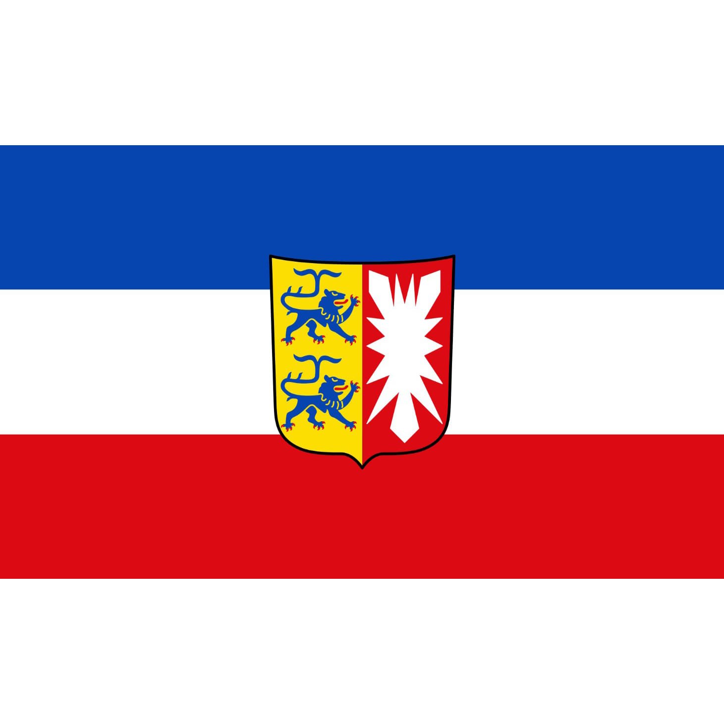 Bandiera dello Stato federale tedesco Schleswig-Holstein con stemma. Ulteriori informazioni