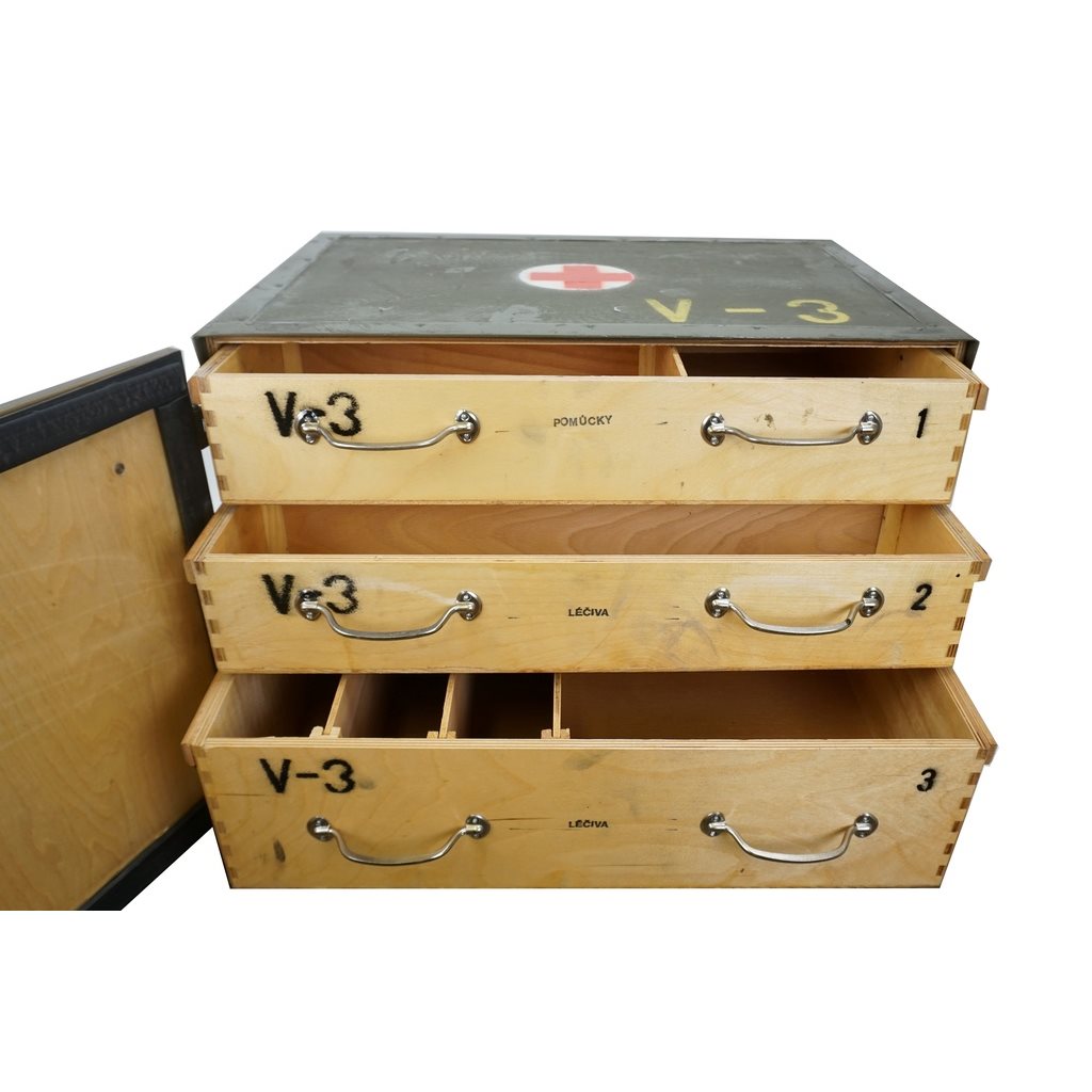 Bedna dřevěná se třemi šuplíky AČR/ČSLA