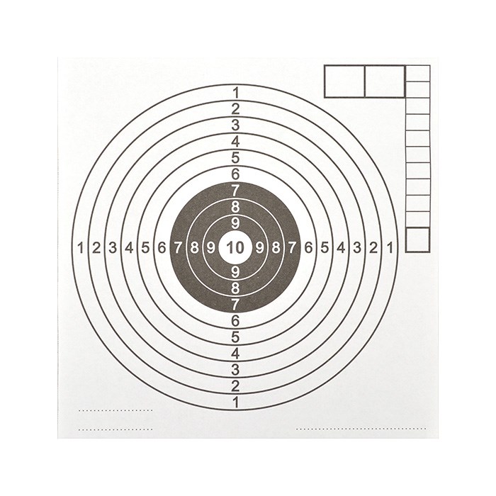 Bersaglio in carta per fucili ad aria compressa e armi softair con centro bianco 140x140 mm. Ulteriori informazioni