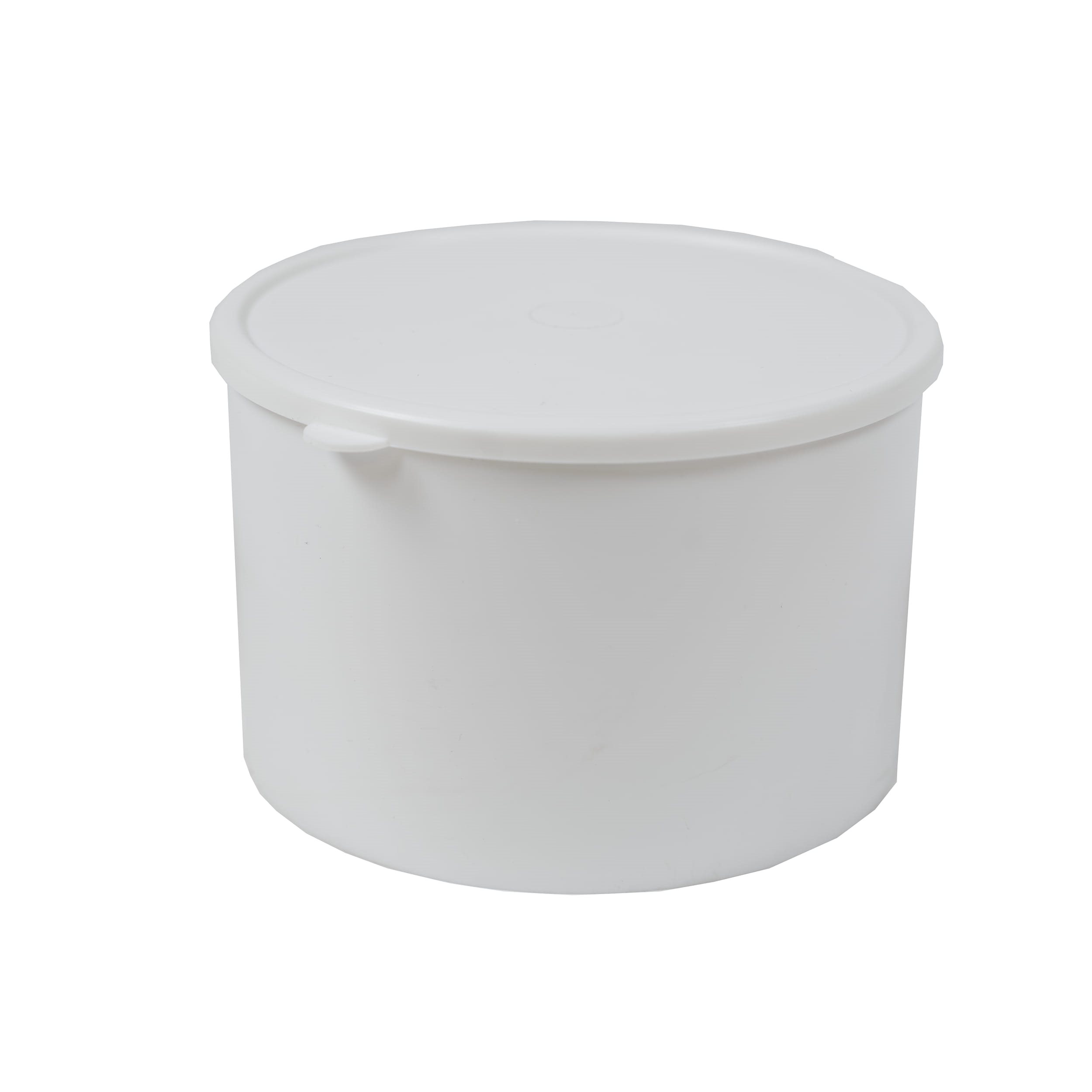 Contenitore in plastica da farmacia con coperchio, capacità 500 ml, realizzato in plastica iniettata atossica (destinato principalmente all'industria farmaceutica). Prodotto conservato a lungo termine.