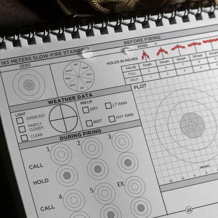 Taccuino impermeabile progettato per annotare gli appunti relativi all'addestramento per l'arruolamento nei Marines. Grazie alla sua struttura, resiste senza problemi a pioggia, neve, tempeste, umidità della foresta pluviale, gelo delle montagne ed è inoltre rinforzato in modo da non piegarsi nemmeno se trasportato quotidianamente nello zaino o in tasca. Il taccuino è ideale come riferimento per i vostri progressi nel tiro, nella corsa, ecc.