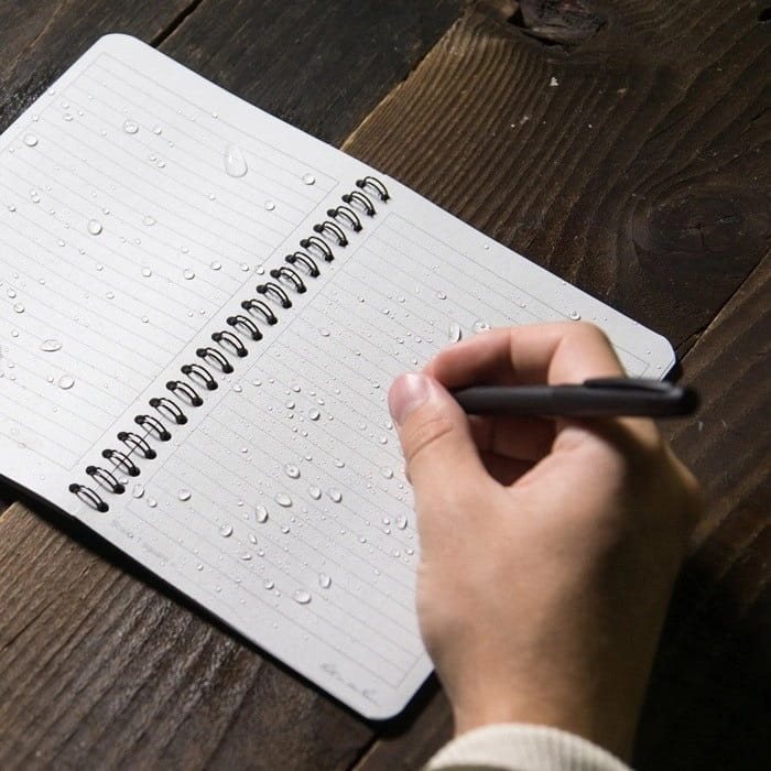 Taccuino impermeabile a righe con rilegatura a spirale. Dimensioni 188 x 128 mm. 32 fogli/64 pagine. Peso 90 g. Prodotto negli Stati Uniti. Ulteriori informazioni