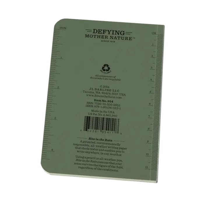 Taccuino impermeabile a righe con copertina resistente. Dimensioni 125 x 90 mm. 56 fogli. Il blocco include conversioni tra unità di misura imperiali e metriche, scale cartografiche. Prodotto negli Stati Uniti. Ulteriori informazioni