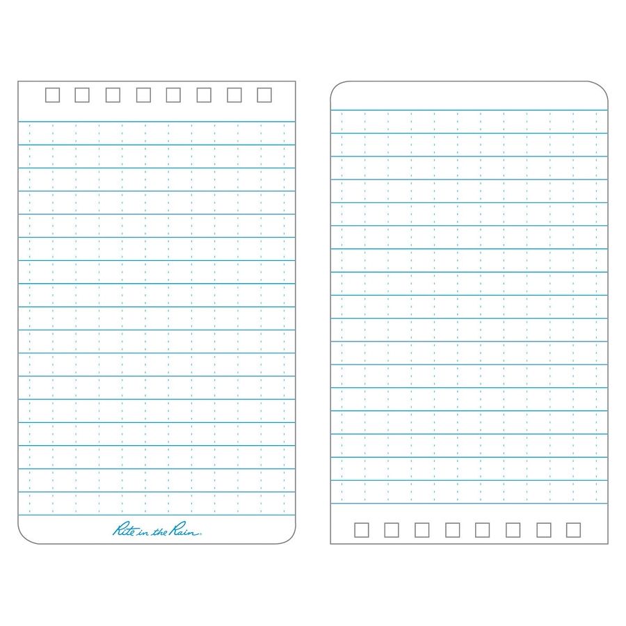 Blocco note impermeabile a righe con rilegatura ad anelli. Dimensioni 127 x 76 mm. Il blocco include conversioni tra unità di misura imperiali e metriche, scale cartografiche. Prodotto negli Stati Uniti. Ulteriori informazioni