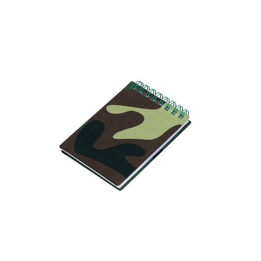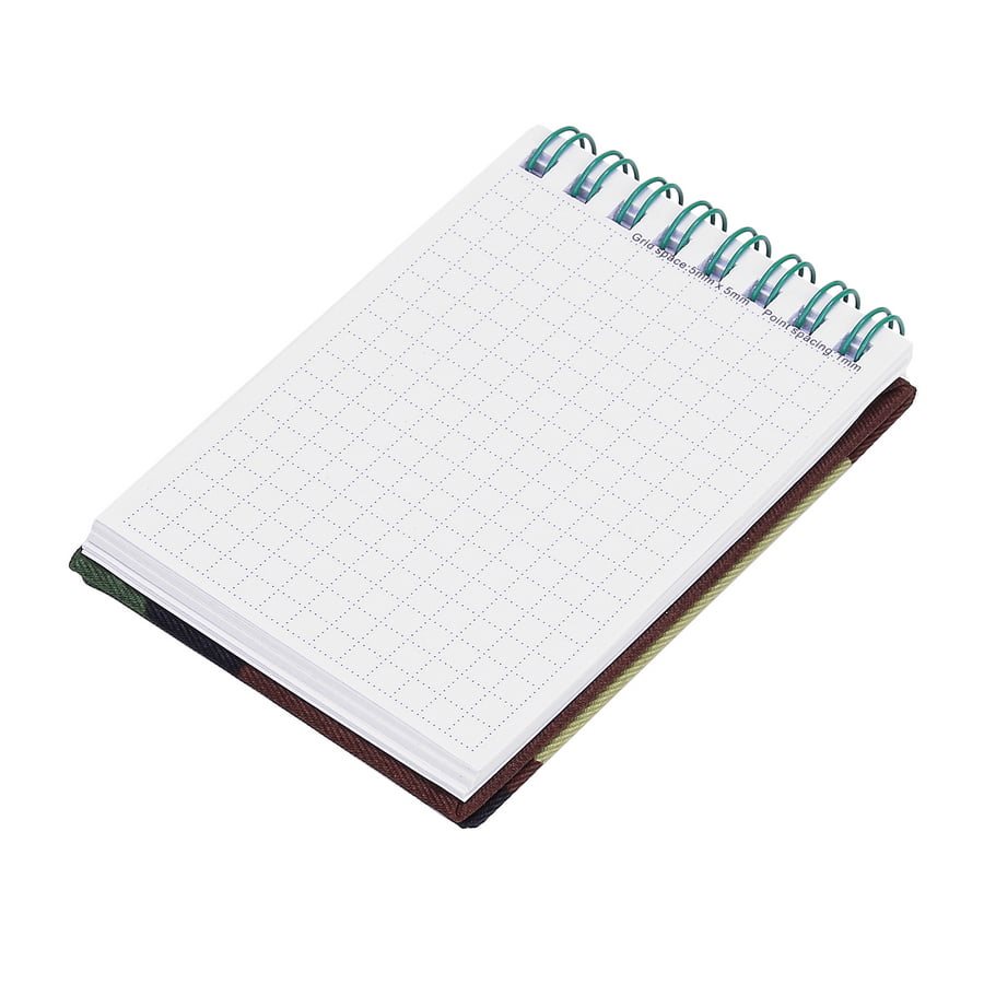 Taccuino in formato A7 con carta a quadretti e rilegatura ad anelli.