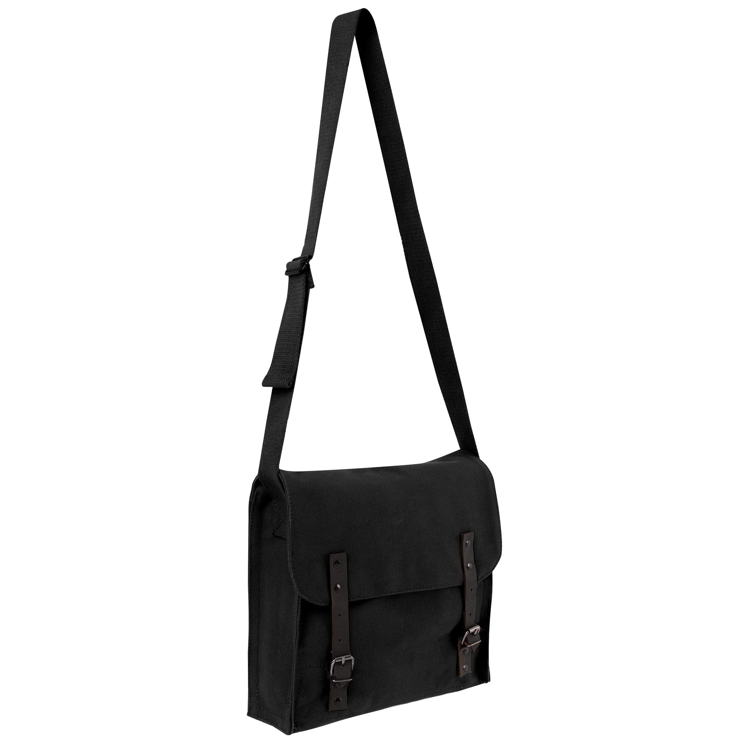 Semplice borsa a tracolla in stile borsa medica, nota anche come borsa porta pane. È realizzata in robusto tela di cotone in stile vintage. La chiusura è assicurata da cinturini in pelle con fibbia. Dimensioni: 30 x 28 x 9 cm.