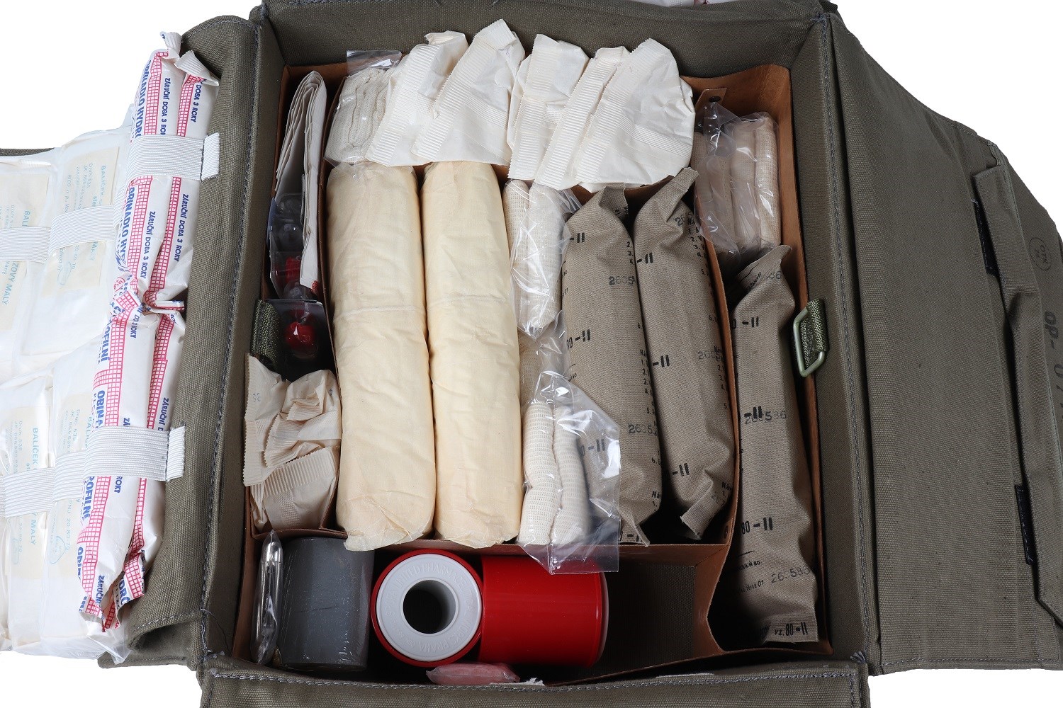Borsa medica proveniente dalla liquidazione dell'Esercito Ceco. Borsa medica ideale per essere riempita con nuovo materiale sanitario. Può essere utilizzata, ad esempio, nei campi o per gruppi di persone che necessitano di avere a disposizione una borsa medica attrezzata.