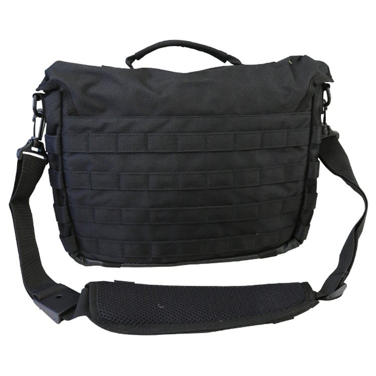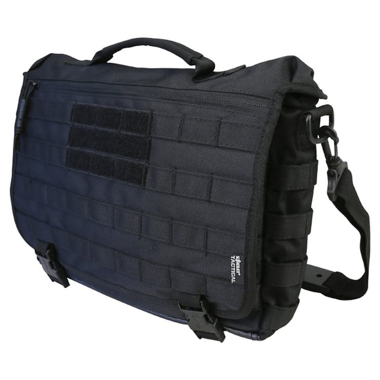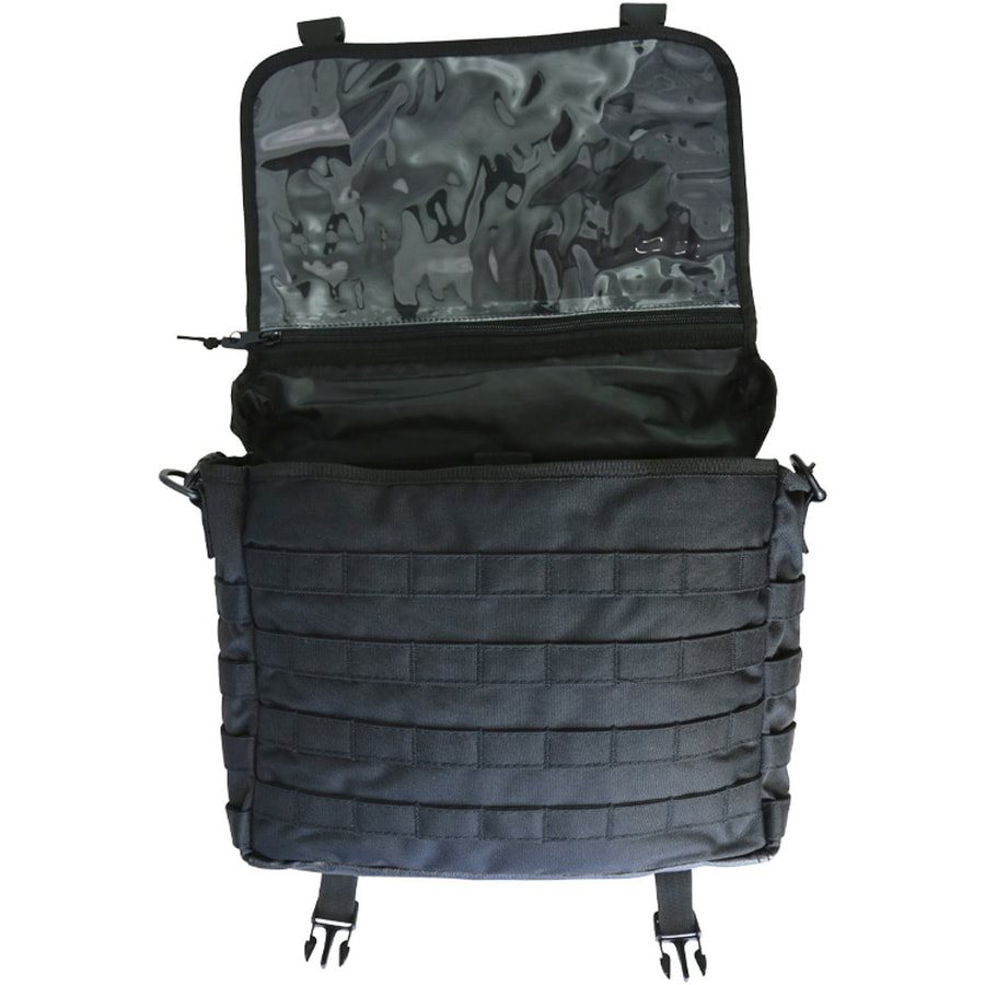 Borsa tattica a tracolla di medie dimensioni con sistema di aggancio MOLLE/PALS nella parte anteriore e posteriore. Sulla patta di chiusura è presente una cerniera che consente di accedere a una tasca piatta per documenti e un pannello in velcro per il fissaggio di patch con chiusura in velcro. La tracolla regolabile è imbottita, in modo da non causare fastidio alla spalla anche con carichi pesanti. La tracolla può essere fissata con un sistema di aggancio in velcro. con velcro. La tracolla regolabile è imbottita, quindi anche con un carico maggiore la borsa non premerà sulla spalla. La tracolla può essere staccata con dei moschettoni e la borsa può essere trasportata a mano. La tracolla è dotata di una linguetta in tessuto per il trasporto.