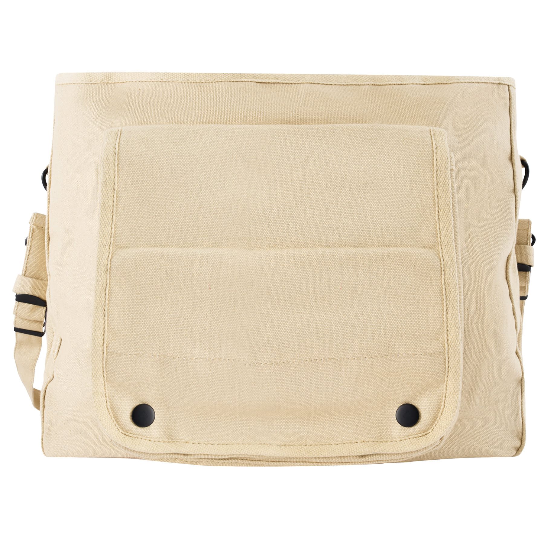 Borsa capiente e pratica con tracolla, ideale per documenti o libri grazie al formato e alla disposizione interna. Realizzata in robusto tela di cotone.