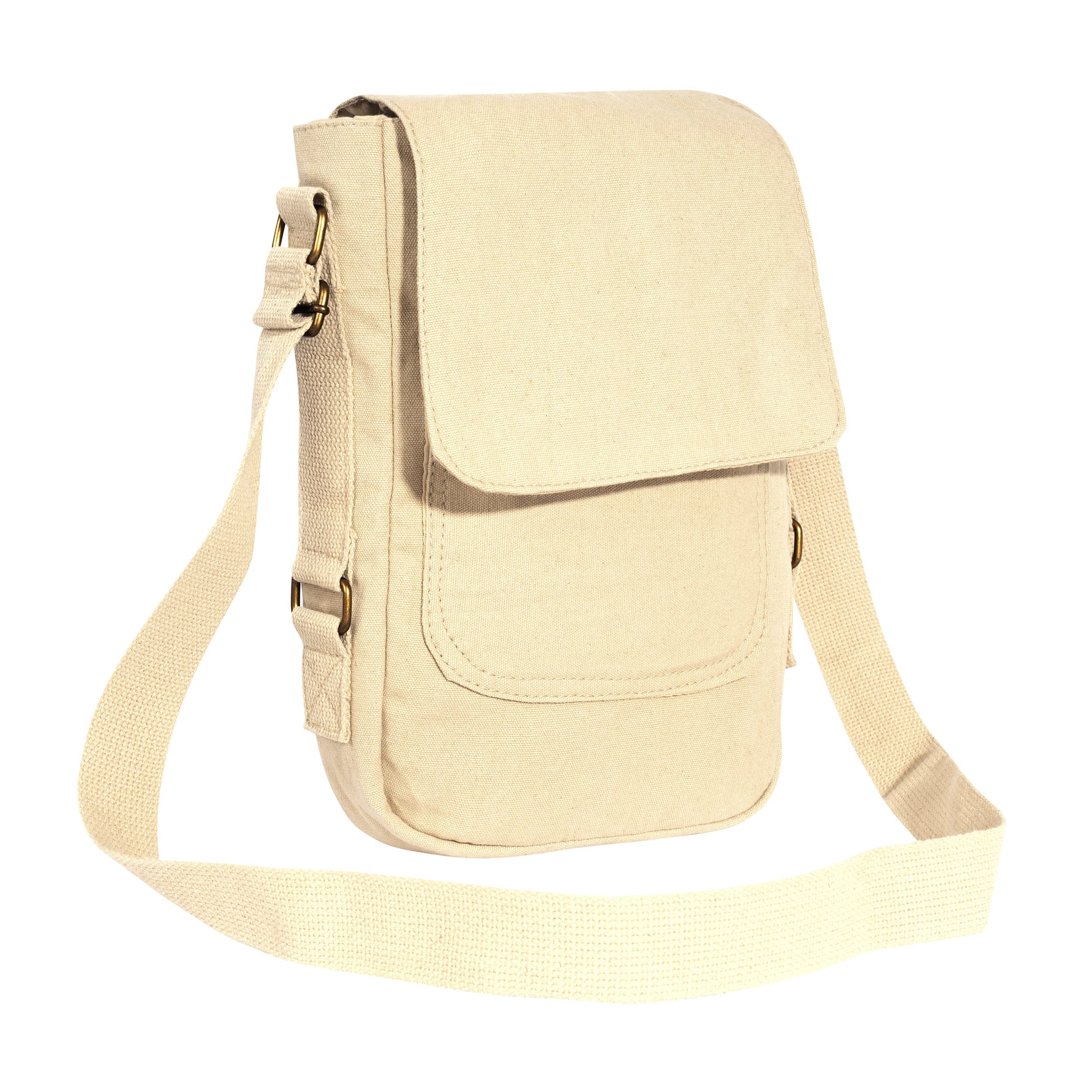 Elegante borsa in tela in tipico stile militare vintage. Le dimensioni e la struttura sono state appositamente progettate per iPad, tablet o laptop di piccole dimensioni. Chiusura con velcro, una tasca esterna, tracolla regolabile. Dimensioni: 29 x 19 x 5 cm.