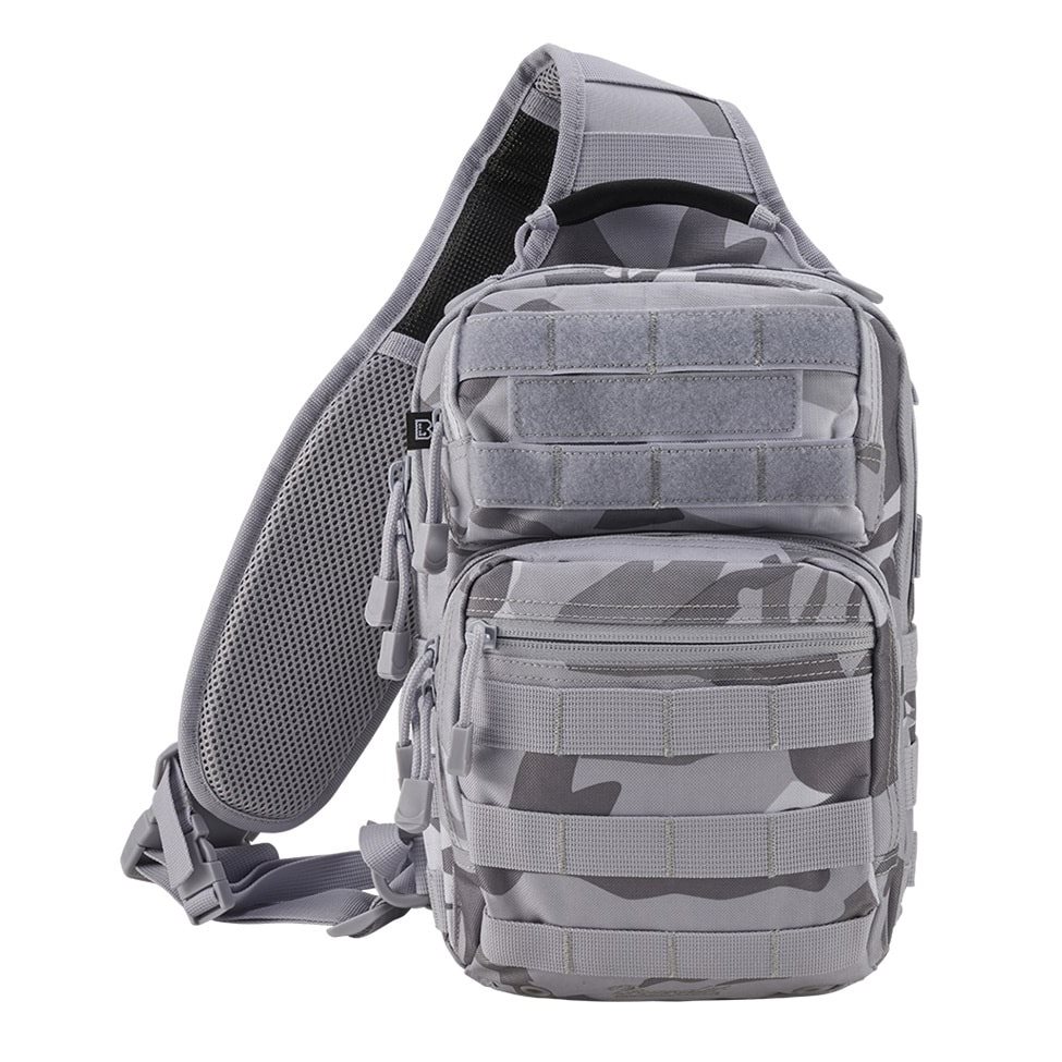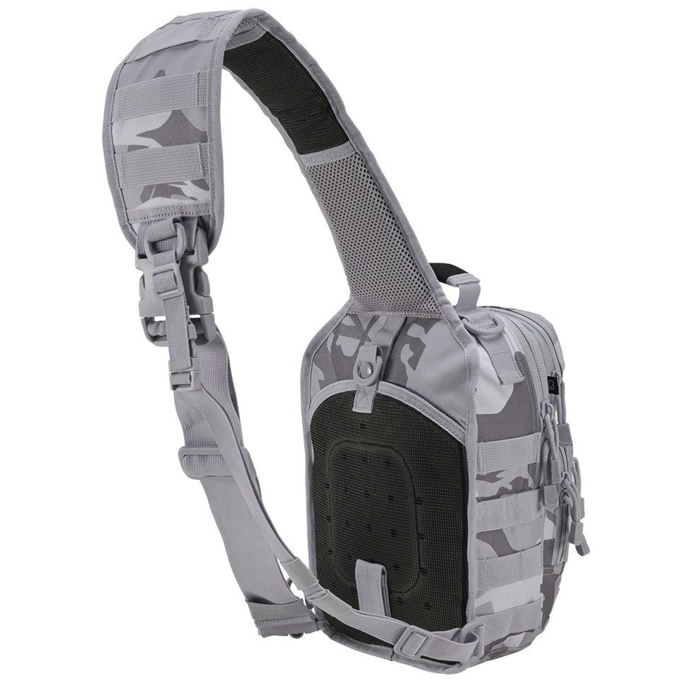 La tracolla regolabile in lunghezza è in gran parte imbottita con rete 3D, dotata di antiscivolo, anelli a D in plastica, elastici e tasca per smartphone di dimensioni massime 8 x 16 cm. La chiusura della tracolla è realizzata con una fibbia in plastica. Anche la cinghia di stabilizzazione laterale è chiusa con una fibbia e può essere sganciata se necessario. Sulla parte anteriore sono presenti tre tasche. La tasca superiore è rivestita esternamente con una trama MOLLE/PALS combinata con velcro per posizionare le vostre toppe VELCRO. Si chiude con una cerniera a senso unico e al suo interno sono presenti tre elastici e uno scomparto piatto per piccoli documenti. Anche la tasca inferiore è rivestita con una trama modulare, dispone di una tasca esterna piatta e di uno spazio interno senza divisori. Lo scomparto principale è accessibile tramite una cerniera a doppio cursore e all'interno troverete uno scomparto elastico con elastico fissato con velcro. Altre due tasche si trovano sulla parte anteriore dello scomparto principale. L'ultimo scomparto si trova sul retro della borsa. È dotato di un rivestimento antiscivolo all'esterno e può contenere un tablet di dimensioni massime 16 x 27 cm.