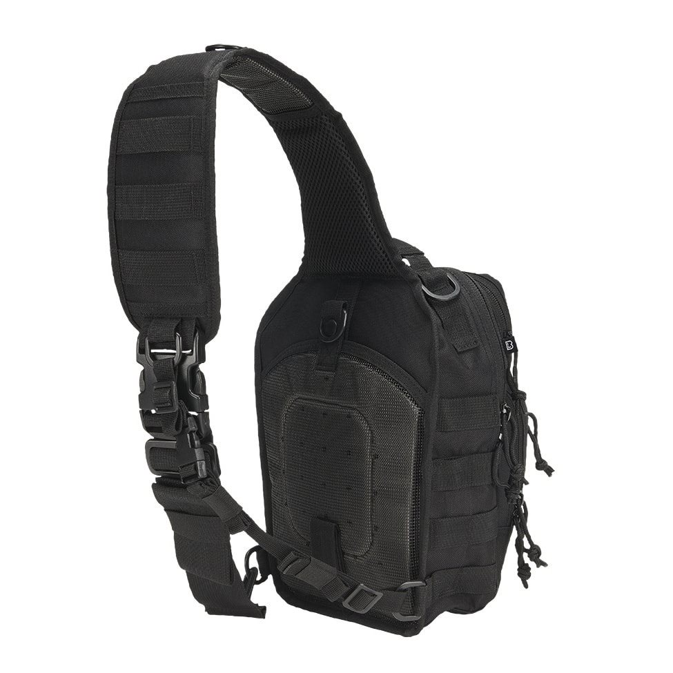 La tracolla regolabile in lunghezza è in gran parte imbottita con rete 3D, dotata di antiscivolo, anelli a D in plastica, elastici e tasca per smartphone di dimensioni massime 8 x 16 cm. La chiusura della tracolla è realizzata con una fibbia in plastica. Anche la cinghia di stabilizzazione laterale è chiusa con una fibbia e può essere rimossa se necessario. Sulla parte anteriore sono presenti due tasche. La tasca superiore è rivestita esternamente con una trama MOLLE/PALS combinata con velcro per posizionare le vostre toppe VELCRO. Si chiude con una cerniera a senso unico e al suo interno sono presenti tre elastici e una tasca piatta per piccoli documenti. Anche la tasca inferiore è rivestita con una trama modulare, dispone di una tasca piatta esterna e di uno spazio interno senza divisori. La tasca principale è accessibile tramite una cerniera a doppio senso e al suo interno è presente uno scomparto elastico con elastico fissato con velcro. Altre due tasche si trovano sulla parte anteriore dello scomparto principale. L'ultimo scomparto si trova sul retro della borsa. È dotato di un rivestimento antiscivolo all'esterno e può contenere un tablet di dimensioni massime 16 x 27 cm.