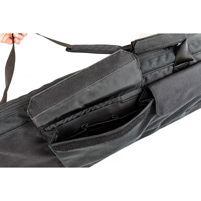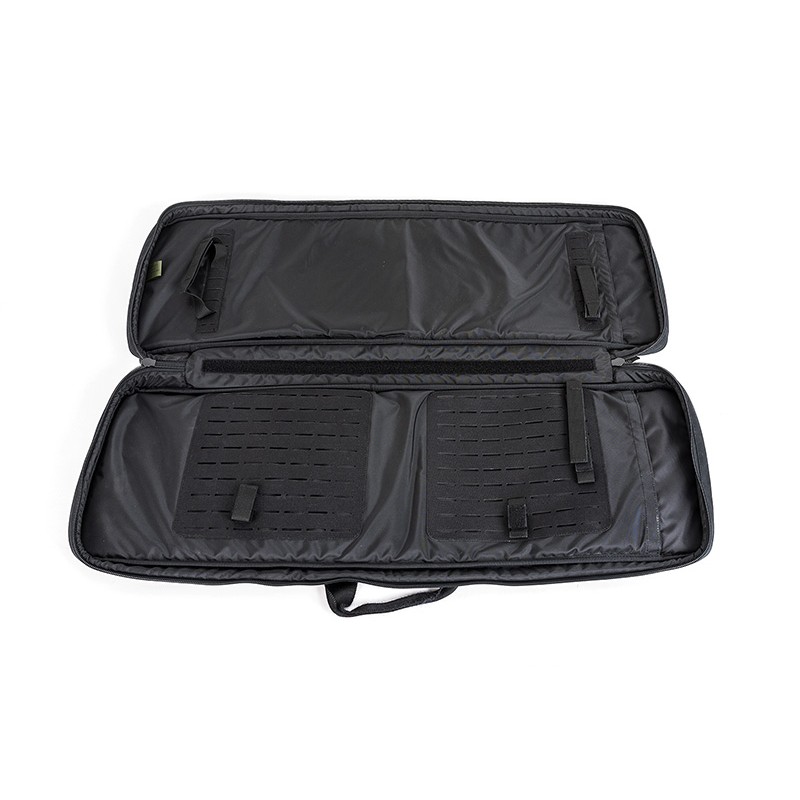 È possibile riporre nella borsa diversi tipi di armi; sul lato posteriore interno, alle estremità più corte, è cucita una fettuccia MOLLE a fila singola, nella quale sono posizionate delle cinghie con chiusura in velcro che servono a fissare la canna e il calcio dell'arma.