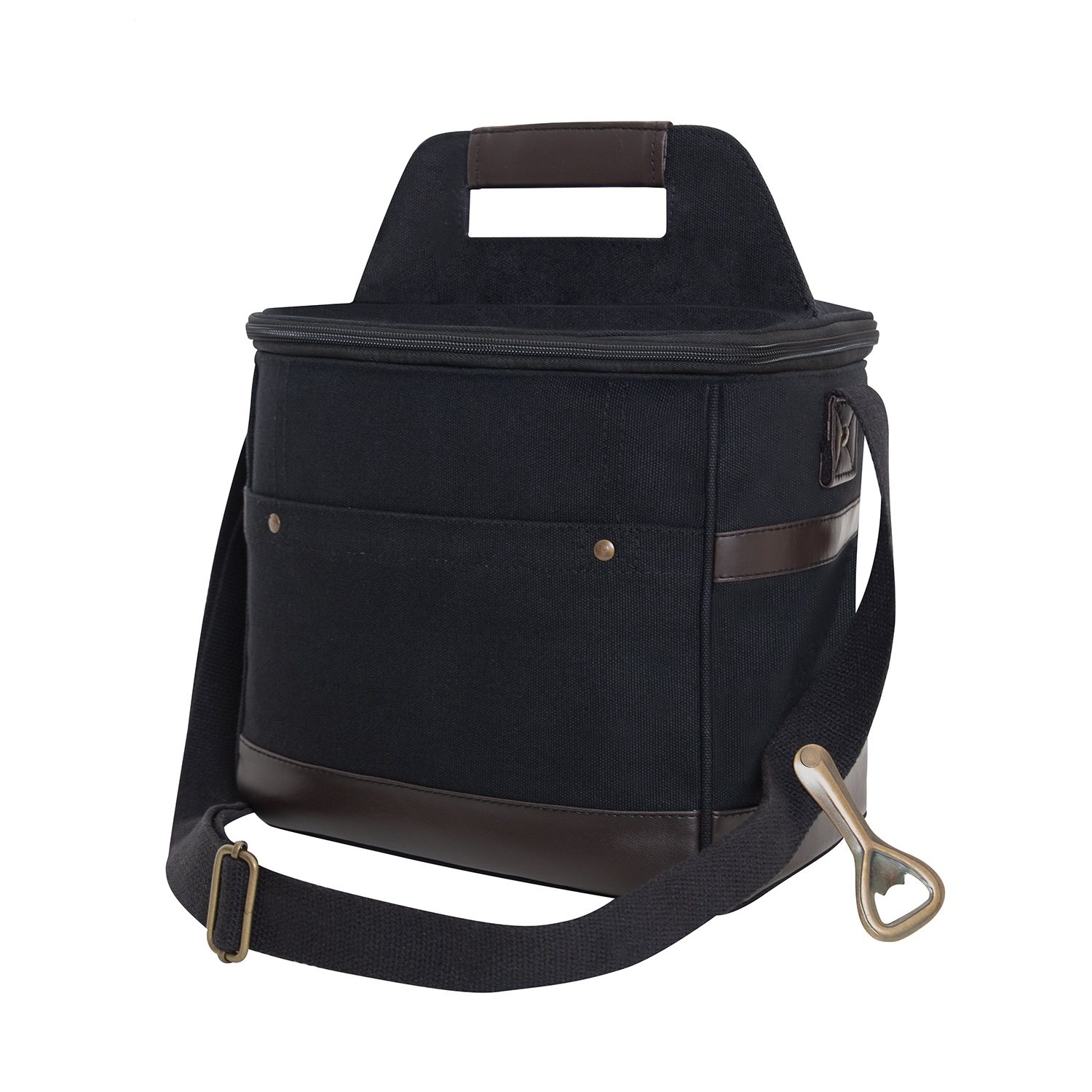 Borsa in tela con una capienza di 6 bottiglie da mezzo litro di birra (o altra bevanda) o lattine o altri snack, che mantiene il contenuto fresco più a lungo. Apribottiglie sul tracolla regolabile. Dimensioni della borsa: 25,5 x 25,5 x 19 cm. Ulteriori informazioni