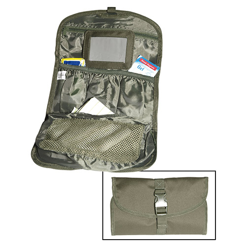 Borsa da toilette pieghevole. Include uno specchio infrangibile. Può essere appesa. Dimensioni: 26,5 x 16,5 cm. Materiale: 100% poliestere. Peso: 200 grammi.