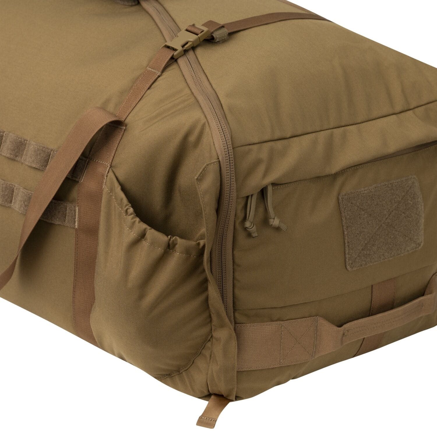 La borsa può essere trasportata in tre modi. Sono disponibili maniglie classiche agganciabili, una tracolla regolabile e leggermente imbottita, oppure è possibile trasportare la borsa come uno zaino utilizzando le cinghie nascoste sul fondo della borsa. All'esterno sono presenti diverse pratiche tasche per piccoli oggetti, un sistema di aggancio modulare standard MOLLE/PALS, chiusure in velcro per la personalizzazione con patch VELCRO e due scomparti piatti chiusi da cerniere a doppio cursore. All'interno della borsa sono presenti quattro tasche in rete.