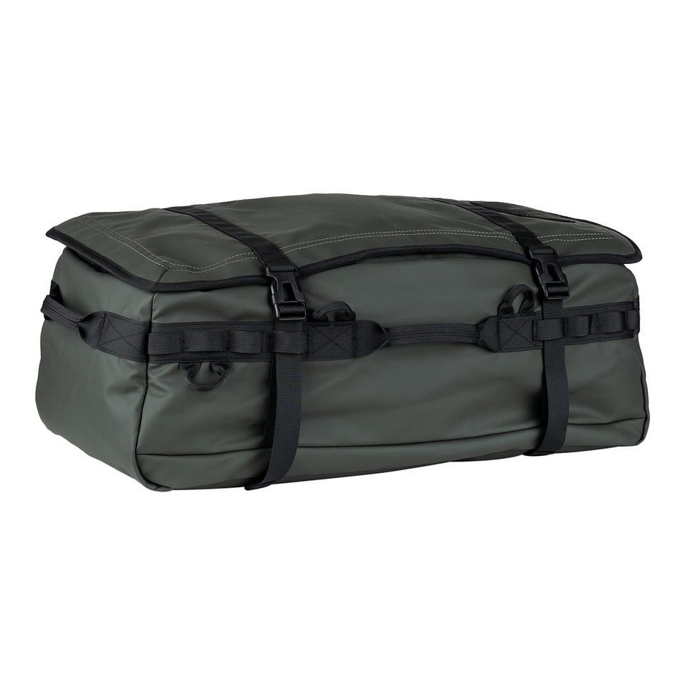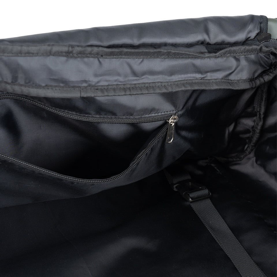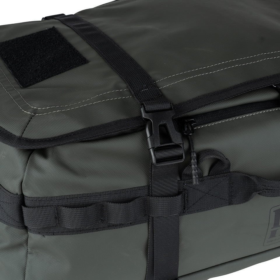Borsa da trasporto versatile che può essere utilizzata anche come zaino grazie alle cinghie integrate. Le cinghie possono essere riposte in una tasca nascosta. Oltre alle cinghie per le spalle, la borsa è dotata anche di tre manici in tessuto per un facile trasporto. La borsa è realizzata in resistente poliestere 100% 900D con rivestimento in poliuretano. L'esterno della borsa è dotato di una serie di passanti per fissare attrezzature aggiuntive come custodie, marsupi, ecc. Per una stabilità ottimale degli oggetti trasportati sulla borsa e all'interno della borsa, sono presenti quattro cinghie di compressione. Oltre allo scomparto principale, è possibile utilizzare tre tasche interne e una tasca esterna per riporre l'attrezzatura.