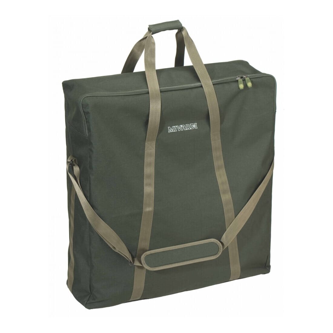 Robusta borsa da trasporto impermeabile realizzata in materiale B-POL600D, realizzata su misura per il lettino Mivardi Professional Hex8. È dotata di maniglie rigide per il trasporto, tracolla regolabile e cerniera robusta con tiretti di design Mivardi.