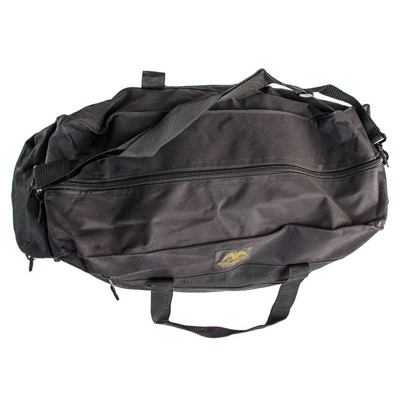 Per il trasporto, la borsa è dotata di manici classici e di una tracolla regolabile e staccabile. Oltre allo scomparto principale, è possibile utilizzare tre tasche esterne per riporre l'attrezzatura. Le due tasche laterali strette hanno una cerniera coperta da una patta. La tasca frontale è adatta per riporre attrezzature piuttosto piatte e larghe.