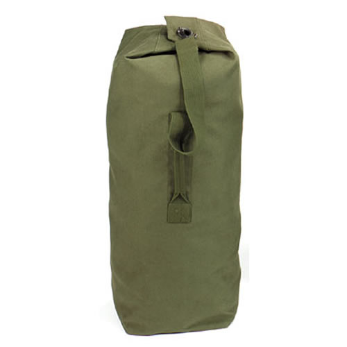 Borsa da viaggio classica (o borsa da marinaio) in robusto tessuto di cotone. Manico per il trasporto a mano e tracolla. Dimensioni: 107 x 63 cm.