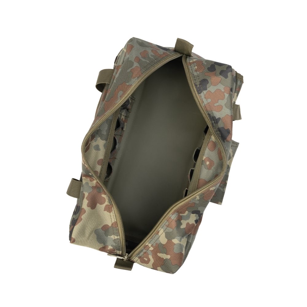 Borsa a mano con una grande tasca. Fondo rigido. Tasca laterale con patta e bottoni a pressione. Dimensioni circa 31x15x12,5 cm. Ulteriori informazioni
