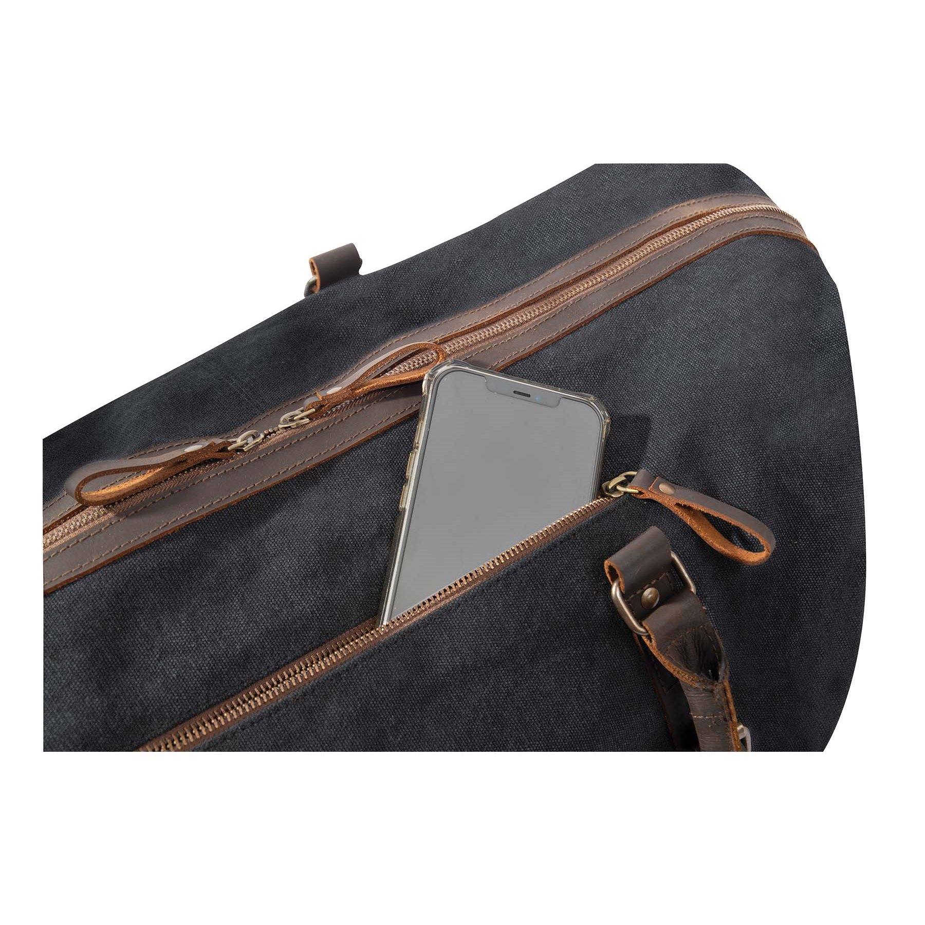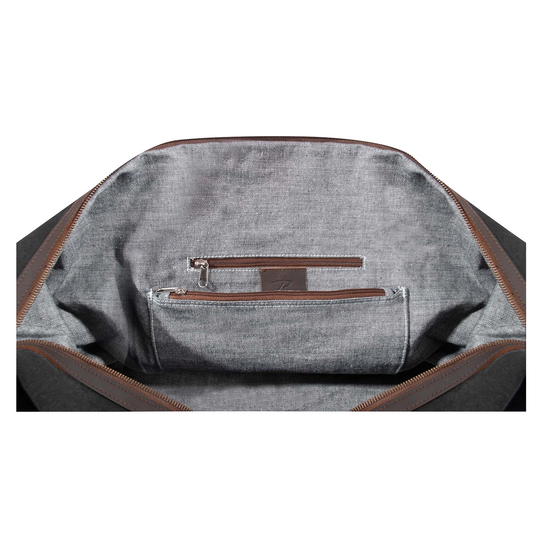 Borsa da viaggio molto elegante con dettagli in pelle. Le parti metalliche in ottone ne sottolineano l'aspetto classico. Viaggiate con stile.