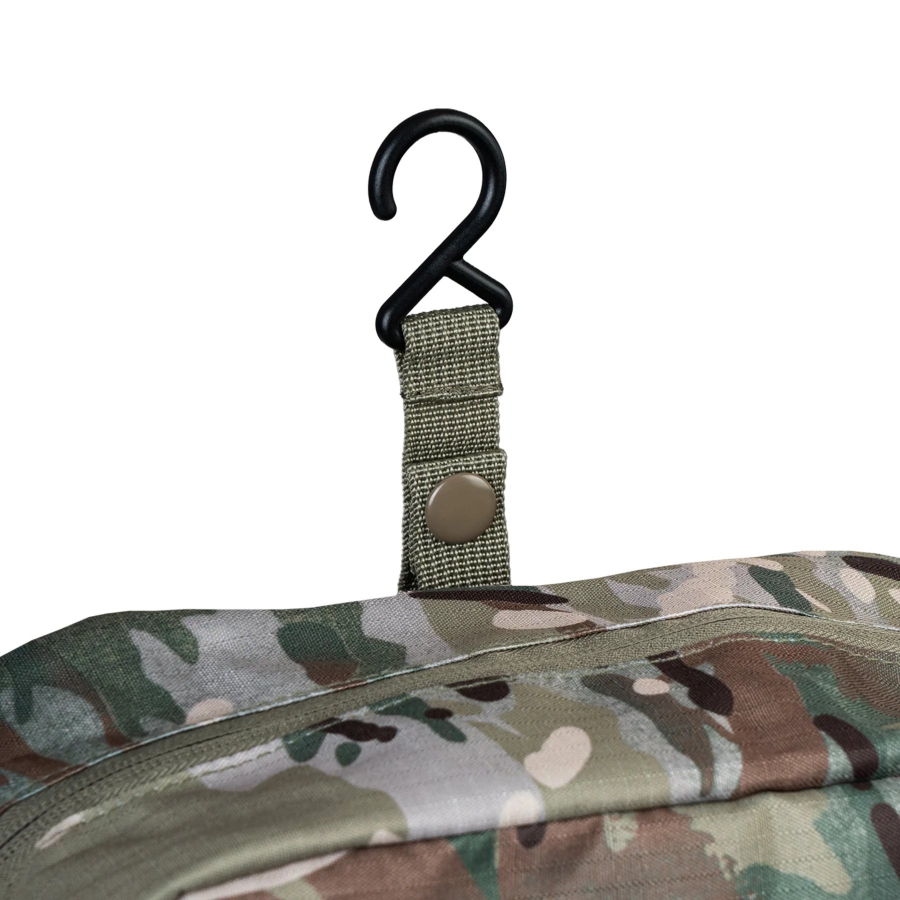 Un gancio nascosto consente un rapido fissaggio a veicoli, strutture o attrezzature da campo, rendendo il contenuto immediatamente accessibile anche in situazioni con poco spazio o tempo.