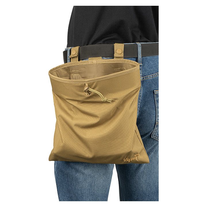 Marsupio avvolgibile per caricatori vuoti prodotto dal fabbricante britannico VIPER. Il marsupio di scarico serve per raccogliere rapidamente i caricatori vuoti e facilitare la ricarica dell'arma. Grazie a due cinturini con chiusura in velcro e bottone a pressione, può essere fissato sia alla cintura che al giubbotto tattico o allo zaino. La custodia consente una chiusura rapida grazie alla patta a manica. Sulla parte anteriore sono presenti tre file di cinghie PALS per il possibile fissaggio di accessori MOLLE o moschettoni grimlock.