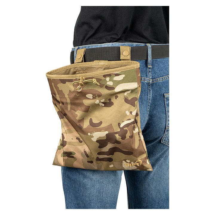 Marsupio avvolgibile per caricatori vuoti prodotto dal fabbricante britannico VIPER. Il marsupio di scarico è utilizzato per la raccolta rapida dei caricatori vuoti e per facilitare la ricarica dell'arma. Grazie a due cinturini con chiusura in velcro e bottone a pressione, può essere fissato sia alla cintura che al giubbotto tattico o allo zaino. La custodia consente una chiusura rapida grazie alla patta a manica. Sulla parte anteriore sono presenti tre file di cinghie PALS per il possibile fissaggio di accessori MOLLE o moschettoni grimlock.