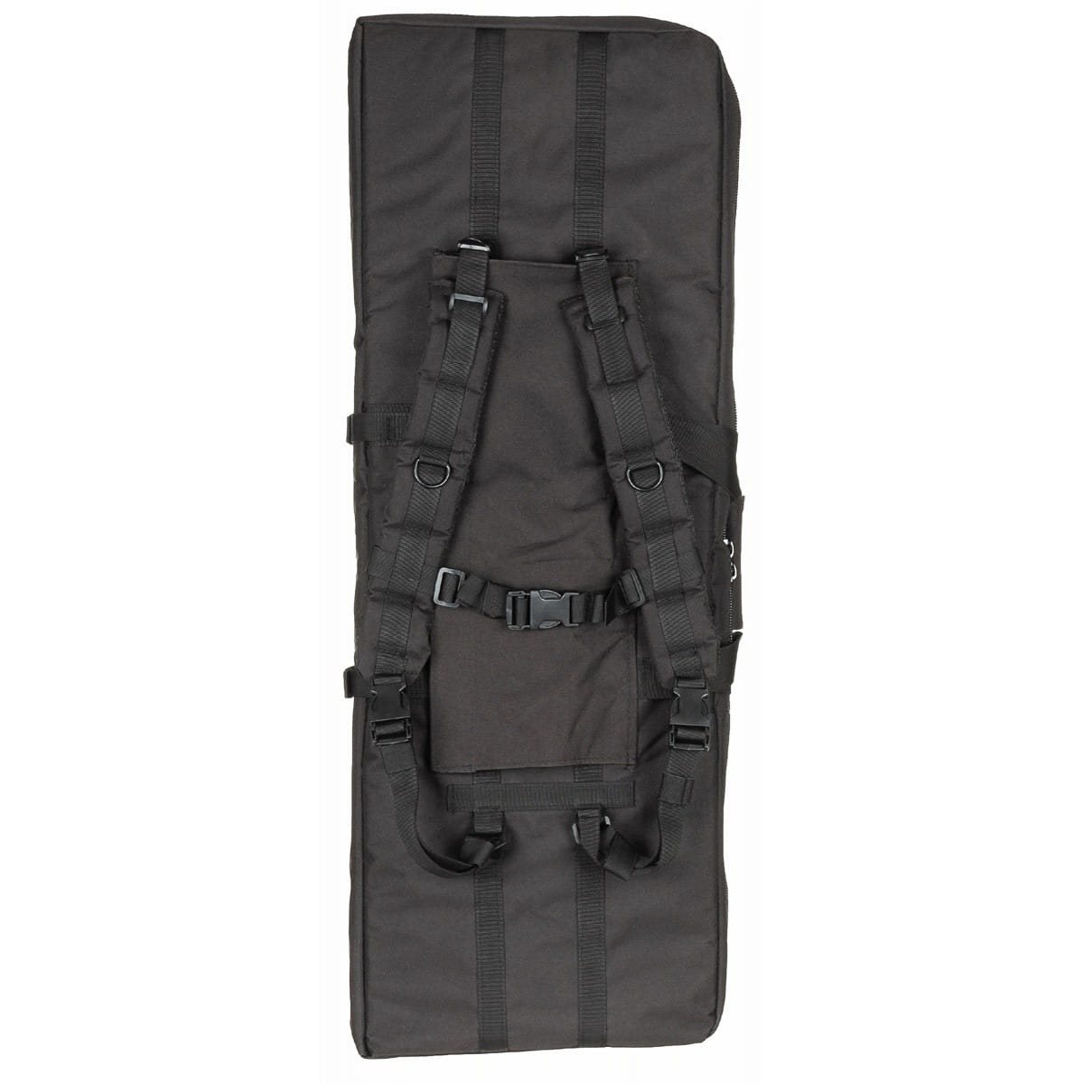 Grande custodia per armi per il trasporto di due fucili lunghi e due pistole. La custodia può essere trasportata a mano o con una tracolla e, infine, sulla schiena grazie a cinghie facilmente staccabili.