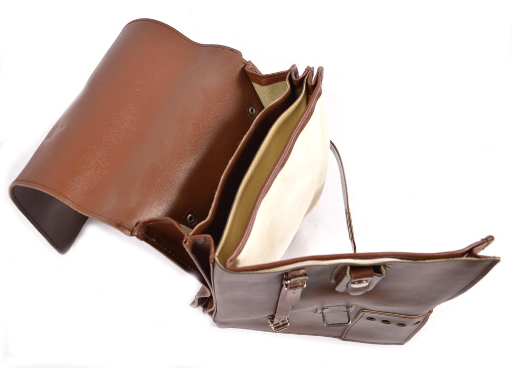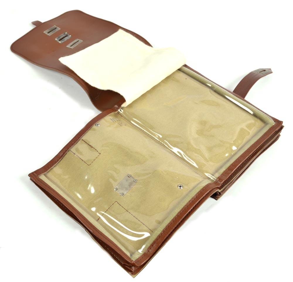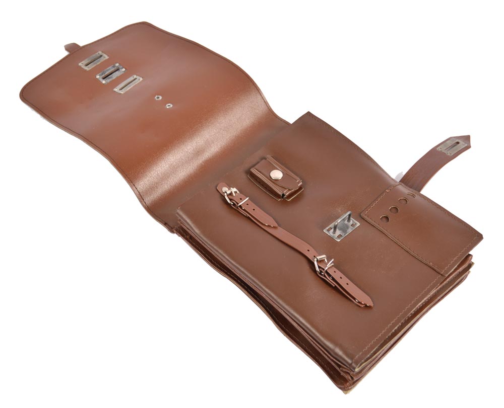 Borsa in similpelle per documenti proveniente dall'equipaggiamento dell'esercito della Germania dell'Est NVA. Articolo usato in ottime condizioni. Fornita con tracolla rimovibile.