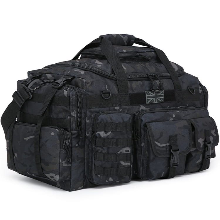 I lati della borsa sono simmetrici e dispongono di due tasche separate accessibili tramite cerniera. La tasca superiore è inoltre dotata di due file di passanti modulari standard MOLLE/PALS.
