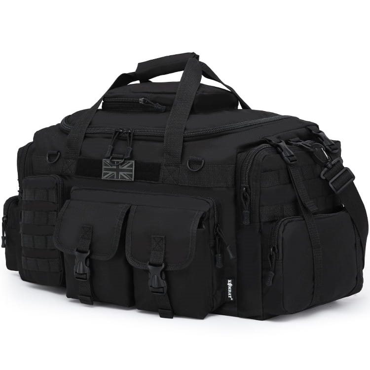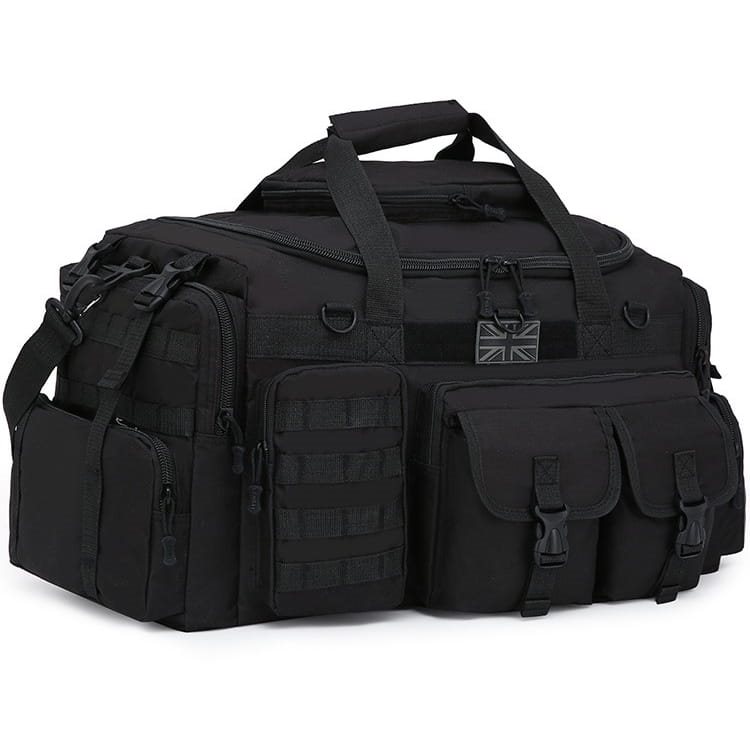 I lati della borsa sono simmetrici e dispongono di due tasche separate accessibili tramite cerniera. La tasca superiore è inoltre dotata di due file di passanti modulari standard MOLLE/PALS.