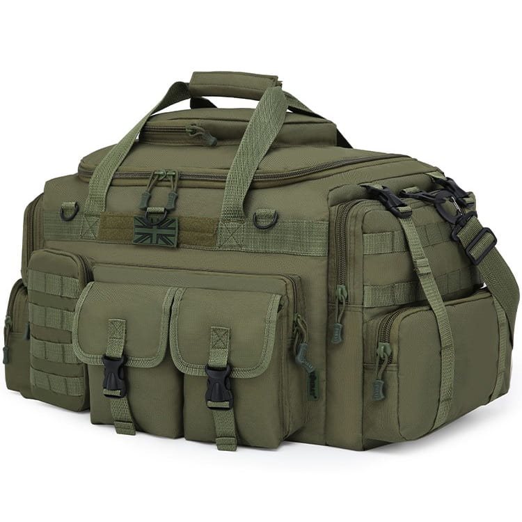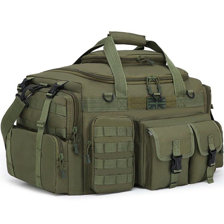 I lati della borsa sono simmetrici e dispongono di due tasche separate accessibili tramite cerniera. La tasca superiore è inoltre dotata di due file di passanti modulari standard MOLLE/PALS.
