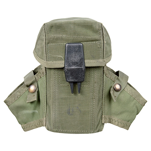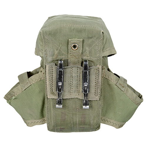 Borsa usata dell'esercito americano. Per 3 caricatori M16, parte del sistema di trasporto LC2, fissaggio alla cintura con due clip. Dimensioni: circa 17 cm x 11 cm x 7 cm. Materiale: 100% nylon. Ulteriori informazioni