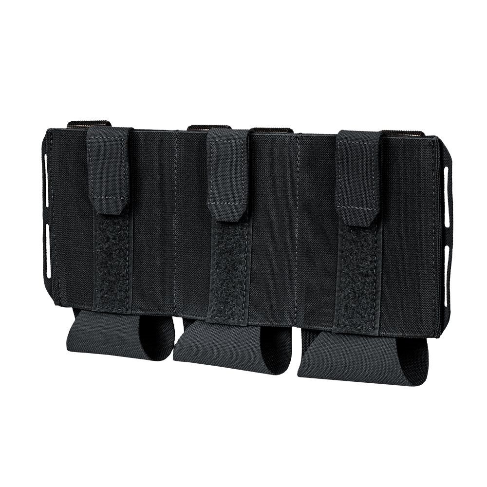 Marsupio triplo aperto per Vanquish Armour System (VAS). Realizzato in materiale elastico resistente. Grazie al fondo regolabile, il marsupio può contenere caricatori M4/AR di varie capacità o altra attrezzatura che si desidera avere a portata di mano. Gli occhielli laterali servono per appendere altra attrezzatura.