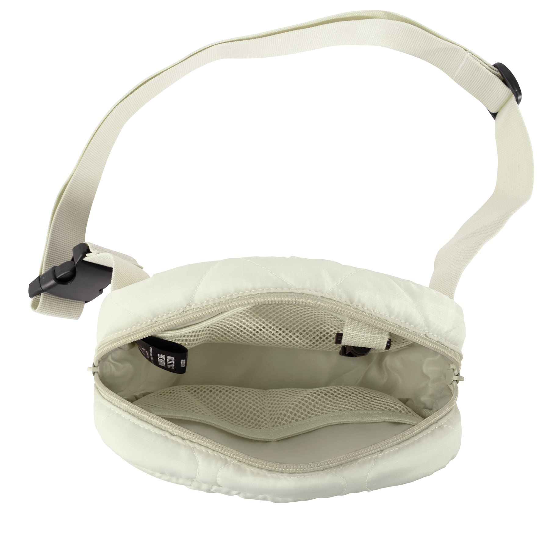Borsa a tracolla pratica, ideale per riporre gli oggetti di uso quotidiano. La borsa è realizzata in stile woobie trapuntato, caratterizzato da un leggero imbottitura delle pareti. Per la sua produzione è stato utilizzato un leggero poliestere 210T con trattamento antistrappo. Per un trasporto confortevole è dotata di una tracolla regolabile in lunghezza con una robusta fibbia in plastica. Sulla parte anteriore è presente una tasca con chiusura a zip obliqua. Lo scomparto principale è accessibile tramite una zip a doppio cursore. All'interno sono presenti tre tasche organizzative in rete.