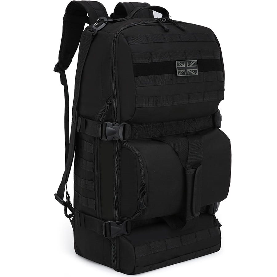 La borsa offre uno spazio sufficiente con un volume totale di 60 litri. Potrete così riporre i vostri oggetti in modo chiaro e organizzato. All'interno troverete altre 2 tasche a rete e altre 3 tasche sono posizionate sulla parte esterna della borsa. Sui lati e sul coperchio la borsa è dotata di una chiusura MOLLE, grazie alla quale potrete aggiungere tasche e custodie compatibili con MOLLE.