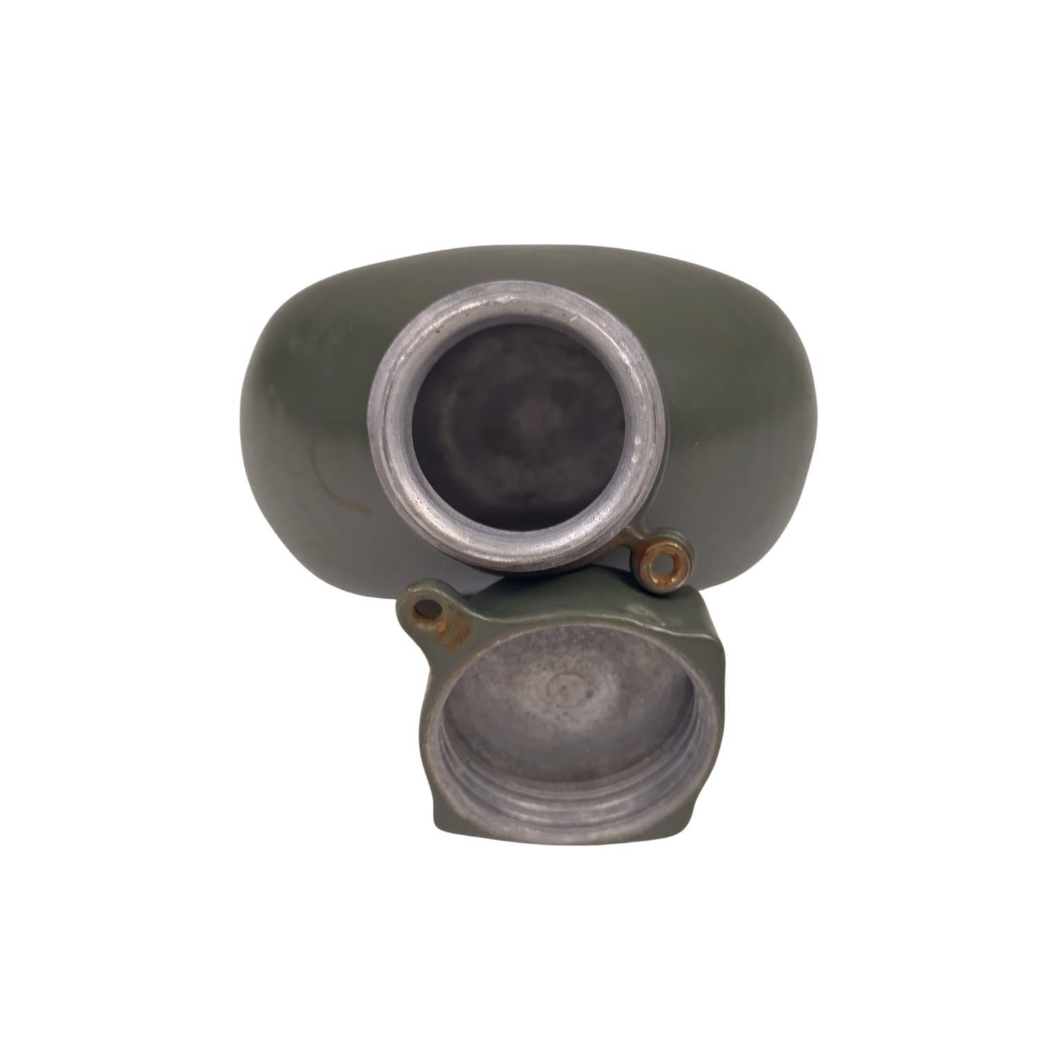 Bottiglia da campo proveniente dai magazzini dell'esercito ungherese. Capacità circa 1 litro, materiale alluminio. La bottiglia è usata, la parte interna è sporca. Ulteriori informazioni