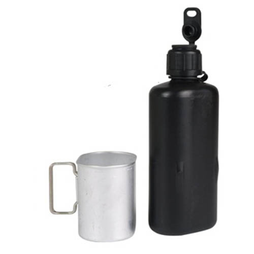 Borraccia in plastica resistente conforme alle specifiche militari.