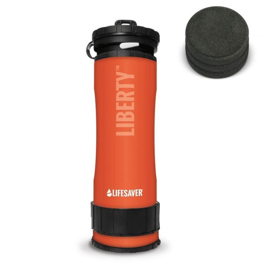 Bottiglia filtrante leggera LIBERTY del marchio LIFESAVER. La bottiglia con una sola cartuccia è in grado di filtrare fino a 2000 litri d'acqua. La bottiglia è ideale per il campeggio, i viaggi o le situazioni di emergenza. Ulteriori informazioni