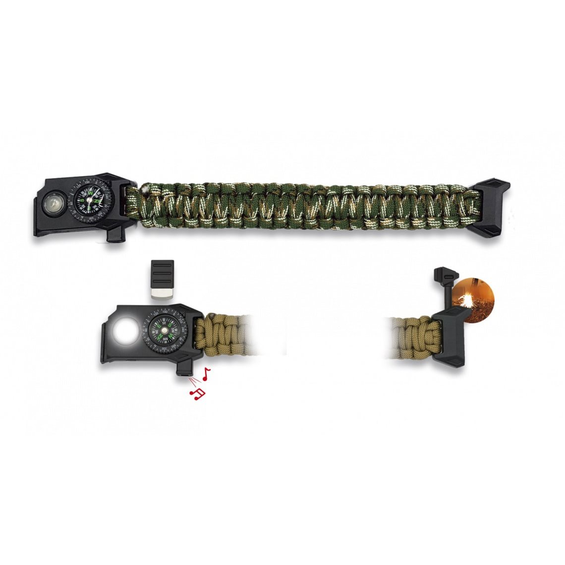 Bracciale paracord con bussola, fischietto e torcia CAMO