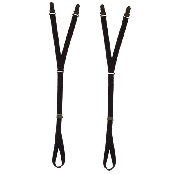 Le bretelle che impediscono alla camicia o alla maglietta di fuoriuscire dai pantaloni, garantendo un abbigliamento sempre impeccabile. Agganciare le clip all'estremità della camicia/maglietta e infilare l'altra estremità (occhiello) sul piede.