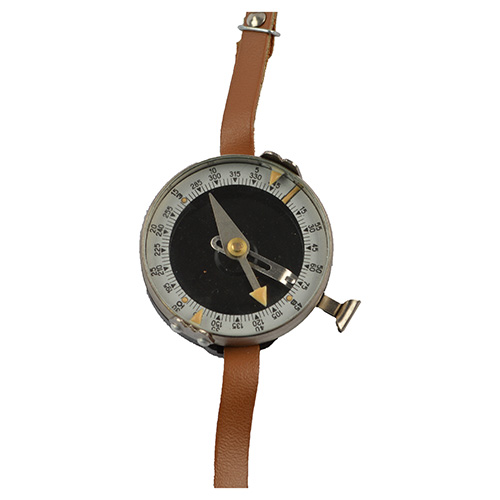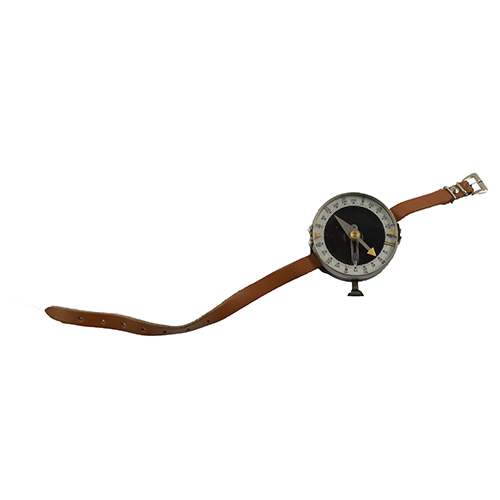 Bussola da polso originale. Cinturino in pelle, diametro 5 cm.