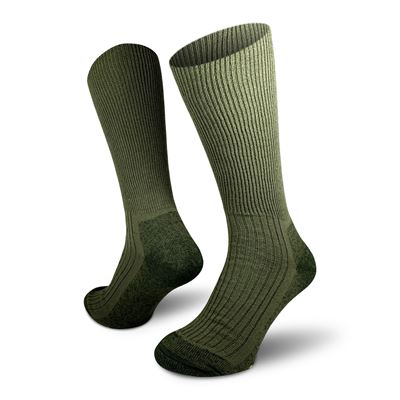 Calzini termici alti adatti per calzature militari alte. Composizione: 52% acrilico, 25% lana, 22% poliammide, 1% elastan. Ulteriori informazioni